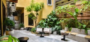 Tại khu vực sân ngoài trời, Cala Garden đã thiết kế theo nguyên tắc tầng – lớp trong bố trí thực vật: